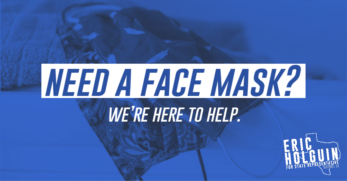 Our campaign is working to accrue cloth washable face masks through great community partners like Herrman & Herrman PLLC to distribute to Nueces County. These will be given out while supplies last!